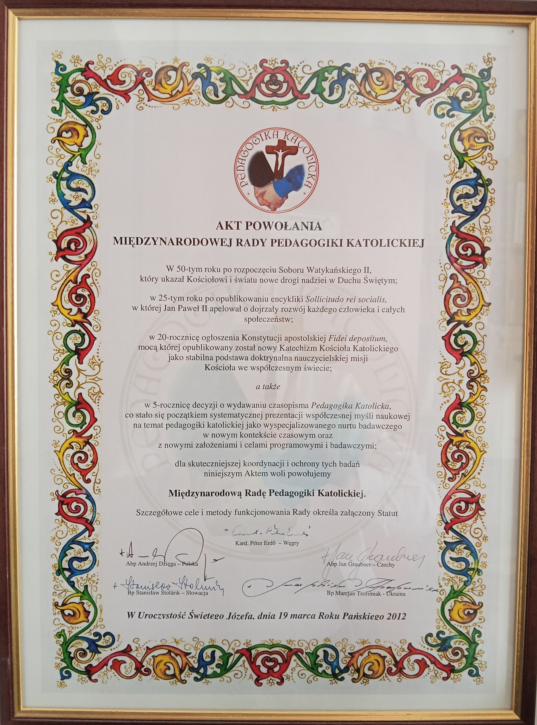 Międzynarodowa Rada Naukowa Pedagogów Katolickich, której idea powstała 28 października 2008 roku, formalnie zainagurowana została przez naukowców Europy pod patronatem pasterzy Kościoła Katolickiego z Węgier, Słowacji, Czech, Ukrainy i Polski. Rada prowadzi nadzór merytoryczny nad stroną internetową i wydawaniem czasopisma pod tym samym tytułem, czyli „Pedagogika Katolicka”. Trzeba jednak zaznaczyć, że prowadzenie strony internetowej i wydawanie czasopisma, to dwie różne inicjatywy wzajemnie się uzupełniające lecz nie tożsame. W dniu 15 czerwca 2016 roku w siedzibie Sekretariatu Konferencji Episkopatu Polski w Warszawie nastąpiło powołanie Międzynarodowej Rady Naukowej Pedagogów Katolickich – oddział Polska. Tak więc w tym roku mija 10 lat działalności Rady – oddział Polska. Warto przypomnieć, że w dniu 19 marca 2012 roku powołano Międzynarodową Radę Pedagogiki Katolickiej, na czele której jako przewodniczący stanął Jego Eminencja Péter kard. Erdő – Prymas Węgier, który w tamtym czasie był Przewodniczącym Konferencji Episkopatów Europy. Ze strony Czech Radę reprezentował Abp Jan Graubner, ze strony Polski – Abp prof. Andrzej Dzięga, ze strony Ukrainy – Bp Marcjan Trofimiak, zaś ze strony Słowacji – Bp prof. Stanisław Stolarik. Międzynarodowa Rada Pedagogiki Katolickiej, która skupia osoby z tychże krajów, prowadzi nadzór merytoryczny nad wydawaniem czasopismem „Pedagogika Katolicka”, pracuje też nad rozwojem pedagogiki katolickiej jako kierunku studiów, a także stara się lansować model wychowania katolickiego na wszystkich poziomach kształcenia młodego pokolenia, poprzez organizowanie i realizację różnych projektów. Radę reprezentuje ks. Jan Zimny, którego zadaniem jest koordynacja działań zespołu w zakresie badań naukowych i opracowań koncepcyjnych pedagogii katolickiej.