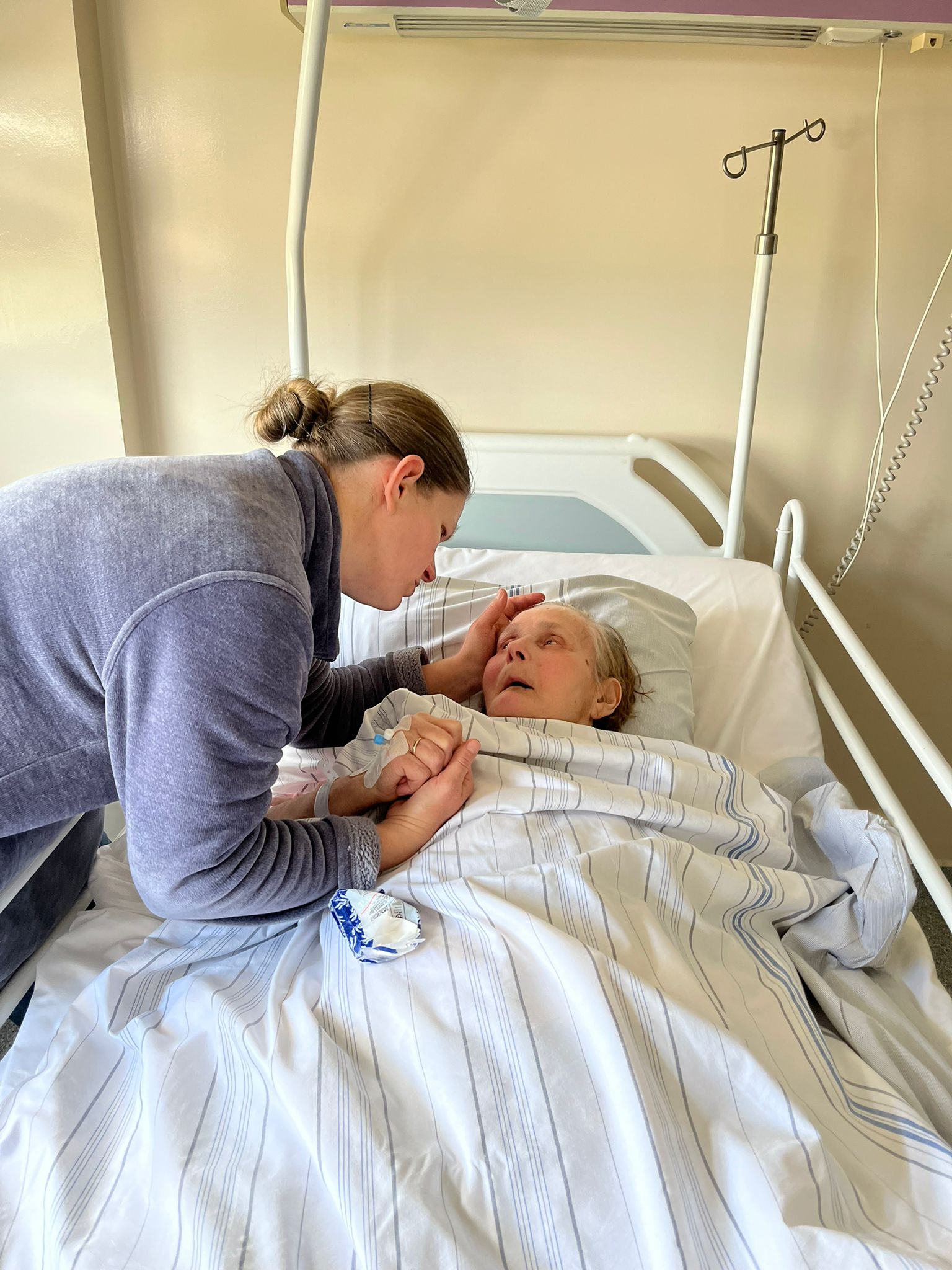 „Kolejny trudny dzień pobytu Mamusi w szpitalu. Nie wiem... Na 1 milimetr bardziej otwarte oczy... Wiemy na pewno, że wszystko słyszy i rozumie, bo reaguje prawą ręką i lekko wodzi za nami oczami. Twarz bez wyrazu - więc nie zobaczysz emocji ani tego, że może ją coś boli. Biedna zamknięta jest w środku ciała, które nie pozwoli jej "wyjść z siebie" i znów komunikować się z nami, funkcjonować. Codziennie modlimy się przy niej na różańcu - dziś przesunęła kilka paciorków. To było piękne! Dalej masujemy i ćwiczymy jej ręce i nogi, oklepujemy, bo tutaj już nikt o to nie zadba.